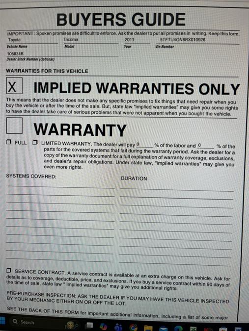 Pictures of used 2011 Toyota Tacoma PreRunner 2WD V6 in Maple Shade, NJ