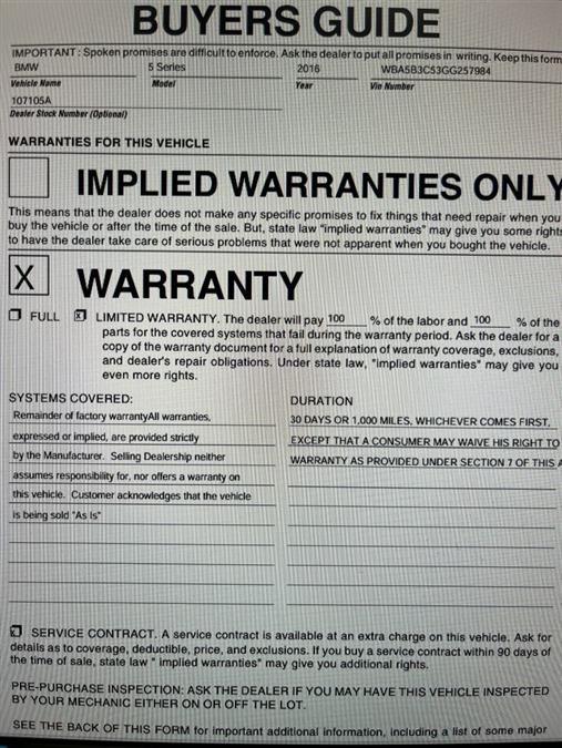 This 2016 BMW 5 Series 535i xDrive MPACK is offered to you for sale by Car Revolution. Quality and prestige abound with this BMW 5 Series 535i xDrive MPACK. This vehicle has an added performance bonus: AWD. It improves handling on those winding back roads, and gives you added safety and control when driving through wet and snow weather conditions. This low mileage BMW 5 Series has barely been touched. It's the next best thing to buying new. Intricately stitched leather and ergonomic design seats are among the details in which test drivers say that BMW 5 Series 535i xDrive MPACK is in a league of its own The BMW 5 Series 535i xDrive MPACK has a navigation system installed, so you'll always know where you're going. This top-tier navigation system is reliable and will get you to your destination quickly and by the most efficient route available. More information about the 2016 BMW 5 Series: The BMW 5-Series stands out as a traditional luxury sport sedan that not only offers strong, uncompromised performance but also some leading-edge safety and connectivity technology. Increasingly, the 5-Series has an advantage over most of its rivals in that it offers more fuel-saving measures than most other sport sedans, with items such as Auto Start/Stop, turbocharging, direct injection and a special Eco Pro driving mode combining to provide significant gains in gas mileage. A diesel model, the 535d, offers yet another fuel-saving powertrain option. Otherwise, the 5-Series sedans offer more comfortable, refined cabins than other sport sedans, and the 5-Series Gran Turismo body style is a good pick for those who want a little more cargo flexibility. The M5 performance sedan remains one of the best-handling and best-performing 4-doors on the market at any price. This model sets itself apart with supercar-level performance from the M5, refined, luxurious interior, leading-edge tech options, Eco-conscious performance, responsive handling, and active-safety features Car Revolution has been in business since 1998 with 2 locations and over 300 cars. A family owned business, focused and determined to extend hospitality to all our clients. We make every effort to present information that is accurate. However, it is based on data provided by the vehicle manufacturer and other sources. Therefore exact Configuration, Color, Certification and Accessories should be used as a guide only and are not guaranteed under any circumstances, for any inaccuracies, claims of losses of any nature. All advertised prices includes all cost to be paid by the consumer, except: Title, Taxes, Registration, License Fees, Insurance, Dealer Prep, Additional Options and include all applicable rebates. Subject to Credit Approval. Every effort is made in order to display accurate and current vehicle information, including Pricing. All vehicles are subjected to prior sale, removal and transport elsewhere, awaiting Title and Ownership Confirmation. Inventory is updated daily and subject to change. Not responsible for typographical errors or omissions. To better insure the specific vehicle's availability, call us right away at 856-316-3444 and feel free to ask any questions. EMG-WB This 2016 BMW 5 Series 535i xDrive is offered to you for sale by Car Revolution. Is it possible to fall in love with a vehicle? It is when your vehicle is as prestige as the BMW 5 Series. Simply put, this all wheel drive vehicle is engineered with higher standards. Enjoy improved steering, superior acceleration, and increased stability and safety while driving this AWD BMW5 Series 535i xDrive. The 5 Series 535i xDrive has been lightly driven and there is little to no wear and tear on this vehicle. The care taken on this pre-owned vehicle is reflective of the 98,694mi put on this BMW. More information about the 2016 BMW 5 Series: The BMW 5-Series stands out as a traditional luxury sport sedan that not only offers strong, uncompromised performance but also some leading-edge safety and connectivity technology. Increasingly, the 5-Series has an advantage over most of its rivals in that it offers more fuel-saving measures than most other sport sedans, with items such as Auto Start/Stop, turbocharging, direct injection and a special Eco Pro driving mode combining to provide significant gains in gas mileage. A diesel model, the 535d, offers yet another fuel-saving powertrain option. Otherwise, the 5-Series sedans offer more comfortable, refined cabins than other sport sedans, and the 5-Series Gran Turismo body style is a good pick for those who want a little more cargo flexibility. The M5 performance sedan remains one of the best-handling and best-performing 4-doors on the market at any price. This model sets itself apart with supercar-level performance from the M5, refined, luxurious interior, leading-edge tech options, Eco-conscious performance, responsive handling, and active-safety features Car Revolution has been in business since 1998 with 2 locations and over 300 cars. A family owned business, focused and determined to extend hospitality to all our clients. We make every effort to present information that is accurate. However, it is based on data provided by the vehicle manufacturer and other sources. Therefore exact Configuration, Color, Certification and Accessories should be used as a guide only and are not guaranteed under any circumstances, for any inaccuracies, claims of losses of any nature. All advertised prices includes all cost to be paid by the consumer, except: Title, Taxes, Registration, License Fees, Insurance, Dealer Prep, Additional Options and include all applicable rebates. Subject to Credit Approval. Every effort is made in order to display accurate and current vehicle information, including Pricing. All vehicles are subjected to prior sale, removal and transport elsewhere, awaiting Title and Ownership Confirmation. Inventory is updated daily and subject to change. Not responsible for typographical errors or omissions. To better insure the specifi