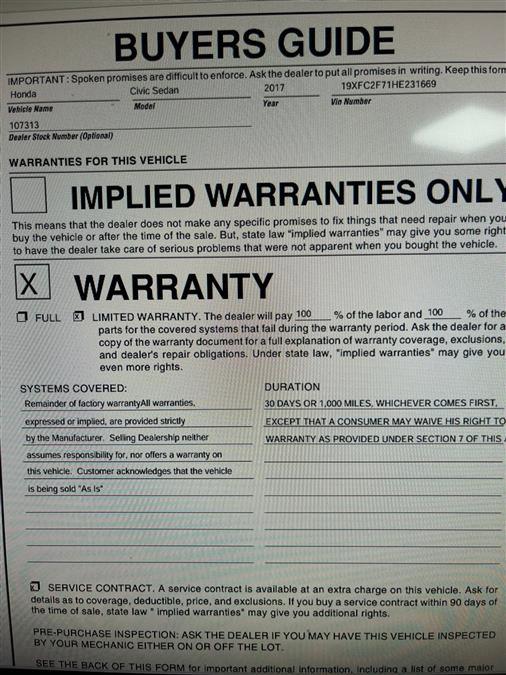 Pictures of used 2017 Honda Civic Sedan EX in Maple Shade, NJ