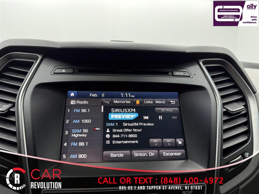 CAR REVOLUTION is pleased to be currently offering this 2017 Hyundai Santa Fe Sport 2.4L with 62,015mi. The Hyundai Santa Fe Sport 2.4L offers a fair amount of utility thanks to its advanced features and unique styling. It's also quite sporty, and injects an ample amount of handling chutzpah into the ridin'-high body of a family-friendly SUV. Hit the gas pedal and put the engine power to all four wheels. With AWD, you'll have the greater performance right off the line, every time you drive. It's not a misprint. And the odometer isn't broken. This is a very low mileage Hyundai Santa Fe Sport. A rare find these days. More information about the 2017 Hyundai Santa Fe Sport: Starting at just under $25,000, the Santa Fe Sport competes with other small SUVs such as the Ford Escape and Toyota RAV4. Meanwhile, the long-wheelbase Santa Fe is more competitive with mid-sized SUVs such as the Toyota Highlander, Honda Pilot and Nissan Pathfinder, and with its standard 290-horsepower V6, it offers more power than all of them. The Santa Fe Sport, on the other hand, features a standard 6-speed automatic, and at 71.5 cubic feet of rear cargo space, it bests competition such as the Toyota Venza and Ford Edge. With strong styling and a long list of available features, the Santa Fe and Santa Fe Sport are appealing options. This model sets itself apart with two-or three-row seating, available all-wheel-drive, fuel efficient, Spacious, great warranty, and powerful Car Revolution has been in business since 1998 with 2 locations and over 300 cars. A family owned business, focused and determined to extend hospitality to all our clients. We make every effort to present information that is accurate. However, it is based on data provided by the vehicle manufacturer and other sources. Therefore exact Configuration, Color, Certification and Accessories should be used as a guide only and are not guaranteed under any circumstances, for any inaccuracies, claims of losses of any nature. All advertised prices includes all cost to be paid by the consumer, except: Title, Taxes, Registration, License Fees, Insurance, Dealer Prep, Additional Options and include all applicable rebates. Subject to Credit Approval. Every effort is made in order to display accurate and current vehicle information, including Pricing. All vehicles are subjected to prior sale, removal and transport elsewhere, awaiting Title and Ownership Confirmation. Inventory is updated daily and subject to change. Not responsible for typographical errors or omissions. To better insure the specific vehicle's availability, call us right away at 732-527-0477 and feel free to ask any questions. EMG-WB