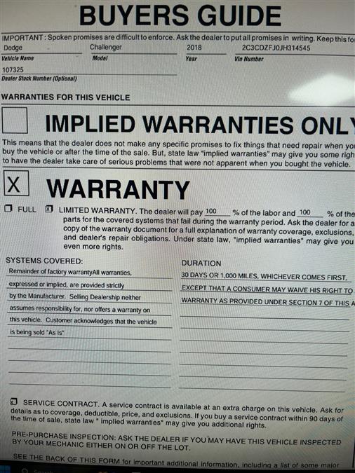 Thank you for visiting another one of Car Revolution's online listings! Please continue for more information on this 2018 Dodge Challenger R/T Scat Pack with 36,856mi. This Dodge includes: Optional Equipment: Exterior and Appearance Non-metallic paint Additional Options Gas Guzzler Tax Interior For Details, Visit DriveUconnect.com Black Paint Pitch Black Clearcoat Non-metallic paint *Note - For third party subscriptions or services, please contact the dealer for more information.* One of the best things about this Dodge Challenger is that it has low, low mileage. It's ready for you to truly break it in. The Dodge Challenger R/T Scat Pack will provide you with everything you have always wanted in a car -- Quality, Reliability, and Character. Surprising quality accompanied by a high level of performance...this Pitch Black Clearcoat on Black Dodge Challenger R/T Scat Pack could end up being the perfect match for you. Car Revolution has been in business since 1998 with 2 locations and over 300 cars. A family owned business, focused and determined to extend hospitality to all our clients. We make every effort to present information that is accurate. However, it is based on data provided by the vehicle manufacturer and other sources. Therefore exact Configuration, Color, Certification and Accessories should be used as a guide only and are not guaranteed under any circumstances, for any inaccuracies, claims of losses of any nature. All advertised prices includes all cost to be paid by the consumer, except: Title, Taxes, Registration, License Fees, Insurance, Dealer Prep, Additional Options and include all applicable rebates. Subject to Credit Approval. Every effort is made in order to display accurate and current vehicle information, including Pricing. All vehicles are subjected to prior sale, removal and transport elsewhere, awaiting Title and Ownership Confirmation. Inventory is updated daily and subject to change. Not responsible for typographical errors or omissions. To better insure the specific vehicle's availability, call us right away at 856-316-3444 and feel free to ask any questions. EMG-WB Contact Car Revolution today for information on dozens of vehicles like this 2018 Dodge Challenger R/T Scat Pack. It's not often you find just the vehicle you are looking for AND with low mileage. This is your chance to take home a pre-owned and barely driven Dodge Challenger. You can finally stop searching... You've found the one you've been looking for. You've found the one you've been looking for. Your dream car. The quintessential Dodge -- This Dodge Challenger R/T Scat Pack speaks volumes about its owner, about uncompromising individuality, a passion for driving and standards far above the ordinary. Car Revolution has been in business since 1998 with 2 locations and over 300 cars. A family owned business, focused and determined to extend hospitality to all our clients. We make every effort to present information that is accurate. However, it is based on data provided by the vehicle manufacturer and other sources. Therefore exact Configuration, Color, Certification and Accessories should be used as a guide only and are not guaranteed under any circumstances, for any inaccuracies, claims of losses of any nature. All advertised prices includes all cost to be paid by the consumer, except: Title, Taxes, Registration, License Fees, Insurance, Dealer Prep, Additional Options and include all applicable rebates. Subject to Credit Approval. Every effort is made in order to display accurate and current vehicle information, including Pricing. All vehicles are subjected to prior sale, removal and transport elsewhere, awaiting Title and Ownership Confirmation. Inventory is updated daily and subject to change. Not responsible for typographical errors or omissions. To better insure the specific vehicle's availability, call us right away at 856-316-3444 and feel free to ask any questions. EMG-WB