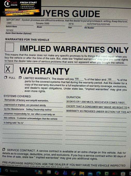 Pictures of used 2018 GMC Savana 3500 Work Van 155 in Maple Shade, NJ
