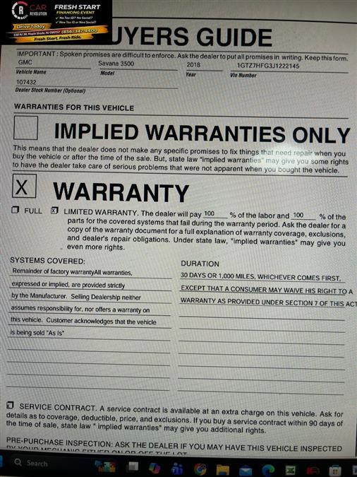 Pictures of used 2018 GMC Savana 3500 Work Van 155 in Maple Shade, NJ
