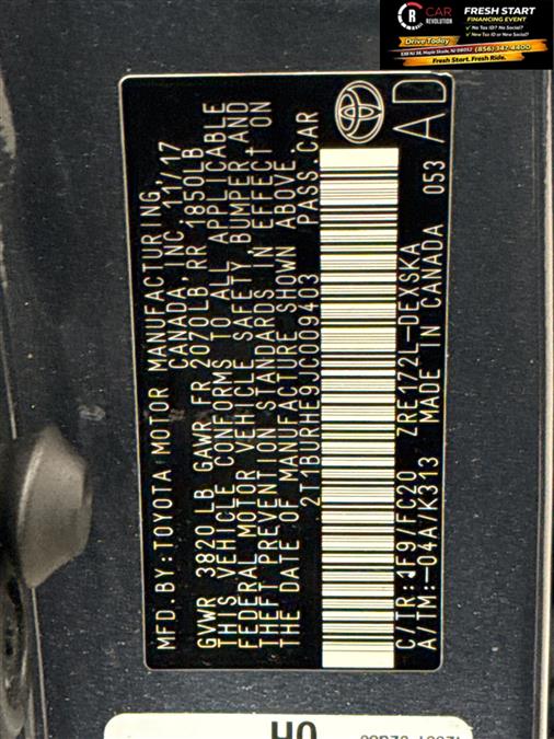 2018ToyotaCorolla This Toyota includes: Optional Equipment: Interior Black All-Weather Floor Liners Rubber front and rear floor mats Smart Key System with Push Button Start Smart Key with hands-free access and push button start Keyfob trunk control Remote panic alarm Push-button Convenience Vinyl/rubber cargo mat Smart Key with hands-free access and push button start Push-button Entertainment Entune Audio Plus with Connected Navigation Single-disc CD player Auxiliary input jack Entune external memory control 3 month satellite trial subscription Siri Eyes Free voice activated audio controls Bluetooth wireless audio streaming 2 total number of 1st row displays 7 inch primary display Primary monitor touchscreen Real-time traffic Bluetooth handsfree wireless device connectivity Entune selective service internet access Entune App Suite smart device app link 1 USB port AM/FM/digital/SiriusXMsatellite Comfort Rubber front and rear floor mats Exterior and Appearance Metallic paint First-row sliding and tilting glass sunroof with express open/close activation sunshade Paint Slate Metallic Metallic paint Emissions 50 State Emissions ULEV II emissions Tier 3 Bin 70 emissions Technology and Telematics Real-time traffic Entune selective service internet access Entune App Suite smart device app link Exterior Rear Bumper Protector Door Edge Guards Tilt and Slide Moonroof First-row sliding and tilting glass sunroof with express open/close activation sunshade Additional Options SE Premium Package: Entune Audio Plus With Connected Navigation App - Includes Entune Multimedia Bundle (7-in High Resolution Touch-Screen Display, AM/FM CD Player, 6 Speakers, Auxiliary Audio Jack, USB 2.0 Port With Ipod Connectivity And Control, Advanced Voice Recognition, Hands-Free Phone Capability, Phone Book Access And Music Streaming Via Bluetooth Wireless Technology), Connected Navigation Scout GPS Link App, Siri Eyes Free, SiriusXM Satellite Radio With 3-Month Complimentary Trial, Gracenote Album Cover Art, HD Radio, and HD Traffic And Weather In Major Metro Areas. Smart Key System On Front Doors And Trunk With Push Button Start. Power Tilt/Slide Moonroof With Sliding Sunshade. Smart Key with hands-free access and push button start Keyfob trunk control First-row sliding and tilting glass sunroof with express open/close activation sunshade Remote panic alarm Push-button All Weather Floor Liners/Cargo Tray Rubber front and rear floor mats Vinyl/rubber cargo mat In-car Entertainment 3 month satellite trial subscription 7 inch primary display AM/FM/digital/SiriusXMsatellite *Note - For third party subscriptions or services, please contact the dealer for more information.* Save money at the pump with this fuel-sipping Toyota Corolla. You could keep looking, but why? You've found the perfect vehicle right here. This is the one. Just what you've been looking for. Car Revolution has been in business since 1998 with 2 locations and over 300 cars. A family owned business, focused and determined to extend hospitality to all our clients. We make every effort to present information that is accurate. However, it is based on data provided by the vehicle manufacturer and other sources. Therefore exact Configuration, Color, Certification and Accessories should be used as a guide only and are not guaranteed under any circumstances, for any inaccuracies, claims of losses of any nature. All advertised prices includes all cost to be paid by the consumer, except: Title, Taxes, Registration, License Fees, Insurance, Dealer Prep, Additional Options and include all applicable rebates. Subject to Credit Approval. Every effort is made in order to display accurate and current vehicle information, including Pricing. All vehicles are subjected to prior sale, removal and transport elsewhere, awaiting Title and Ownership Confirmation. Inventory is updated daily and subject to change. Not responsible for typographical errors or omissions. To better insure the specific vehicle's availability, call us right away at 856-316-3444 and feel free to ask any questions. EMG-WB 2018ToyotaCorolla The 2018 Toyota offers compelling fuel-efficiency along with great value. You will no longer feel the need to repeatedly fill up this Toyota Corolla SE's gas tank, in part because of it's superb EPA rating. There is no reason why you shouldn't buy this Toyota Corolla SE. It is incomparable for the price and quality. The quintessential Toyota -- This Toyota Corolla SE speaks volumes about its owner, about uncompromising individuality, a passion for driving and standards far above the ordinary. You can finally stop searching... You've found the one you've been looking for. Car Revolution has been in business since 1998 with 2 locations and over 300 cars. A family owned business, focused and determined to extend hospitality to all our clients. We make every effort to present information that is accurate. However, it is based on data provided by the vehicle manufacturer and other sources. Therefore exact Configuration, Color, Certification and Accessories should be used as a guide only and are not guaranteed under any circumstances, for any inaccuracies, claims of losses of any nature. All advertised prices includes all cost to be paid by the consumer, except: Title, Taxes, Registration, License Fees, Insurance, Dealer Prep, Additional Options and include all applicable rebates. Subject to Credit Approval. Every effort is made in order to display accurate and current vehicle information, including Pricing. All vehicles are subjected to prior sale, removal and transport elsewhere, awaiting Title and Ownership Confirmation. Inventory is updated daily and subject to change. Not responsible for typographical errors or omissions. To better insure the specific vehicle's availability, call us right away at 856-316-3444 and feel free to ask any questions. EMG-WB