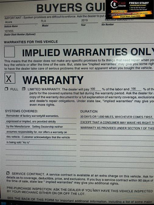 Contact Car Revolution today for information on dozens of vehicles like this 2019 Acura TLX w/A-Spec Pkg. Opulent refinements married with exceptional engineering make this the kind of car you'll want to own for a lifetime. It's not often you find just the vehicle you are looking for AND with low mileage. This is your chance to take home a pre-owned and barely driven Acura TLX. This is the one. Just what you've been looking for. This is about the time when you're saying it is too good to be true, and let us be the one's to tell you, it is absolutely true. Car Revolution has been in business since 1998 with 2 locations and over 300 cars. A family owned business, focused and determined to extend hospitality to all our clients. We make every effort to present information that is accurate. However, it is based on data provided by the vehicle manufacturer and other sources. Therefore exact Configuration, Color, Certification and Accessories should be used as a guide only and are not guaranteed under any circumstances, for any inaccuracies, claims of losses of any nature. All advertised prices includes all cost to be paid by the consumer, except: Title, Taxes, Registration, License Fees, Insurance, Dealer Prep, Additional Options and include all applicable rebates. Subject to Credit Approval. Every effort is made in order to display accurate and current vehicle information, including Pricing. All vehicles are subjected to prior sale, removal and transport elsewhere, awaiting Title and Ownership Confirmation. Inventory is updated daily and subject to change. Not responsible for typographical errors or omissions. To better insure the specific vehicle's availability, call us right away at 856-316-3444 and feel free to ask any questions. EMG-WB
