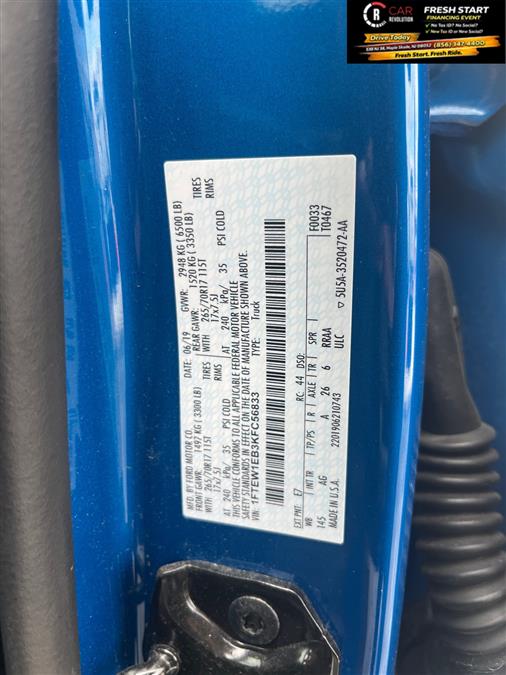 Looking for a clean, well-cared for 2019 Ford F-150? This is it. This Ford includes: Optional Equipment: Safety and Security Remote activated perimeter approach lighting Illuminated entry Security system MyKey restricted driving mode/alerts Rear parking sensors Remote panic alarm Safety MyKey MyKey restricted driving mode/alerts Perimeter Alarm Security system Convenience Power door mirrors Steering wheel mounted audio controls Cruise control with steering wheel mounted controls Retained accessory power Power door locks with 2 stage unlocking Keyfob keyless entry All-in-one remote fob and ignition key Auto-locking doors Tailgate/power door lock Inclinometer Redundant digital speedometer Bulb failure warning Trip computer Power first-row windows Power second-row windows Driver and passenger one-touch down windows Driver and passenger one-touch up windows Driver information center Comfort Vinyl front seat upholstery Vinyl front seatback upholstery Full carpet floor covering Carpet front and rear floor mats Vinyl rear seat upholstery Exterior and Appearance Running boards Tough Bed spray-in pickup bed liner Body-colored front bumper Body-colored rear bumper Metallic paint Exterior badging Class IV tow rating Trailer hitch Front license plate bracket Body-colored front bumper rub strip Seating VINYL 40/20/40 FRONT SEAT 40-20-40 split-bench front seat Vinyl front seat upholstery Vinyl front seatback upholstery Vinyl rear seat upholstery Carpet rear seatback upholstery Split-bench front seat Front seat center armrest Exterior BLACK PLATFORM RUNNING BOARDS Running boards FRONT LICENSE PLATE BRACKET Front license plate bracket BEDLINER-TOUGHBED SPRAYIN*ACCY Tough Bed spray-in pickup bed liner Power Glass Sideview Mirrors with Black Skull Caps Power door mirrors Driver convex spotter mirror Standard style side mirrors Manual folding door mirrors Black door mirrors Box Side Decals Exterior badging Body-Color Front and Rear Bumpers Body-colored front bumper Body-colored rear bumper Body-colored front bumper rub strip In-car Entertainment SYNC external memory control SYNC voice activated audio controls Bluetooth wireless audio streaming Additional Options XL SPORT APPEARANCE PACKAGE Body-colored front bumper Body-colored rear bumper Exterior badging Body-colored front bumper rub strip Equipment Group 101A Mid 2 total number of 1st row displays 4.2 inch primary display Inclinometer Redundant digital speedometer Bulb failure warning Service interval indicator Trip computer Driver information center XL Power Equipment Group Power door mirrors Driver convex spotter mirror Remote activated perimeter approach lighting Standard style side mirrors Illuminated entry Retained accessory power Power door locks with 2 stage unlocking Keyfob keyless entry All-in-one remote fob and ignition key Auto-locking doors Tailgate/power door lock Manual folding door mirrors Security system MyKey restricted driving mode/alerts Power first-row windows Power second-row windows Driver and passenger one-touch down windows Driver and passenger one-touch up windows Black door mirrors Remote panic alarm Power Front and Rear Windows Retained accessory power Power first-row windows Power second-row windows Driver and passenger one-touch down windows Driver and passenger one-touch up windows Interior REVERSE SENSING SYSTEM Rear parking sensors COLOR-COORDINATED CARPET Full carpet floor covering Carpet front and rear floor mats Full carpet floor covering Carpet front and rear floor mats MEDIUM GRAY VINYL 40/20/40 Cruise Control Cruise control with steering wheel mounted controls 4.2 Productivity Screen in Instrument Cluster 2 total number of 1st row displays 4.2 inch primary display Inclinometer Redundant digital speedometer Bulb failure warning Service interval indicator Trip computer Driver information center Power Tailgate Lock Tailgate/power door lock Illuminated Entry Illuminated entry Power Door Locks Remote activated perimeter approach lighting Power door locks with 2 stage unlocking Keyfob keyless entry All-in-one remote fob and ignition key Auto-locking doors Remote panic alarm Entertainment SYNC SYNC external memory control Steering wheel mounted audio controls SYNC voice activated audio controls Bluetooth wireless audio streaming 4.2 inch primary display 911 Assist emergency SOS system via mobile device Bluetooth handsfree wireless device connectivity AppLink smart device app link 1 USB port AM/FM Paint VELOCITY BLUE Metallic paint Emissions 50 STATE EMISSIONS Federal emissions Trailering CLASS IV TRAILER HITCH Trailer wiring harness Class IV tow rating Trailer hitch Technology and Telematics 911 Assist emergency SOS system via mobile device Bluetooth handsfree wireless device connectivity AppLink smart device app link 1 USB port *Note - For third party subscriptions or services, please contact the dealer for more information.* This 4WD-equipped vehicle will handle beautifully on any terrain and in any weather condition your may find yourself in. The benefits of driving a 4 wheel drive vehicle, such as this Ford F-150 XL, include superior traction and stability. It's not often you find just the vehicle you are looking for AND with low mileage. This is your chance to take home a pre-owned and barely driven Ford F-150. You've found the one you've been looking for. Your dream car. Car Revolution has been in business since 1998 with 2 locations and over 300 cars. A family owned business, focused and determined to extend hospitality to all our clients. We make every effort to present information that is accurate. However, it is based on data provided by the vehicle manufacturer and other sources. Therefore exact Configuration, Color, Certification and Accessories should be used as a guide only and are not guaranteed under any circumstances, for any inaccuracies, claims of losses of any nature. All advertised prices includes all cost to be paid by the consumer, except: Title, Taxes, Registration, License Fees, Insurance, Dealer P