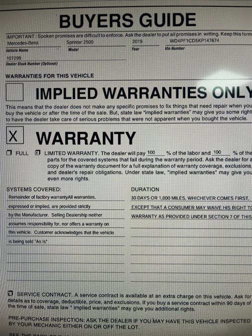 Pictures of used 2019 Mercedes-benz Sprinter 2500 in Maple Shade, NJ