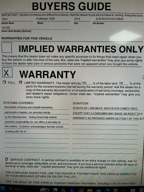 Pictures of used 2019 Ram Promaster 2500 High Roof in Maple Shade, NJ