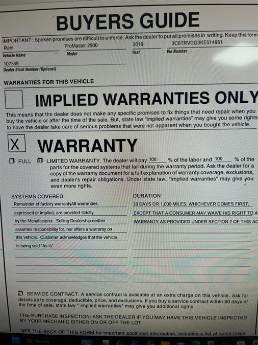 Pictures of used 2019 Ram Promaster 2500 High Roof in Maple Shade, NJ