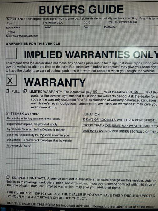 Pictures of used 2019 Ram Promaster 3500 High Roof EXT in Maple Shade, NJ