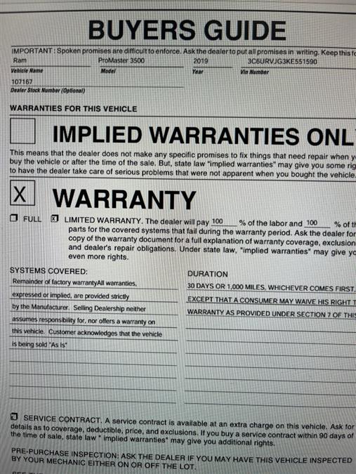 Pictures of used 2019 Ram Promaster 3500 High Roof EXT in Maple Shade, NJ
