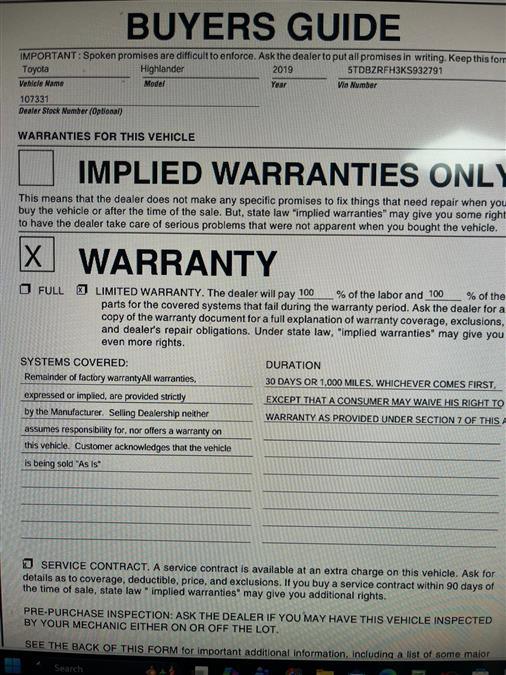 Pictures of used 2019 Toyota Highlander LE V6 AWD in Maple Shade, NJ