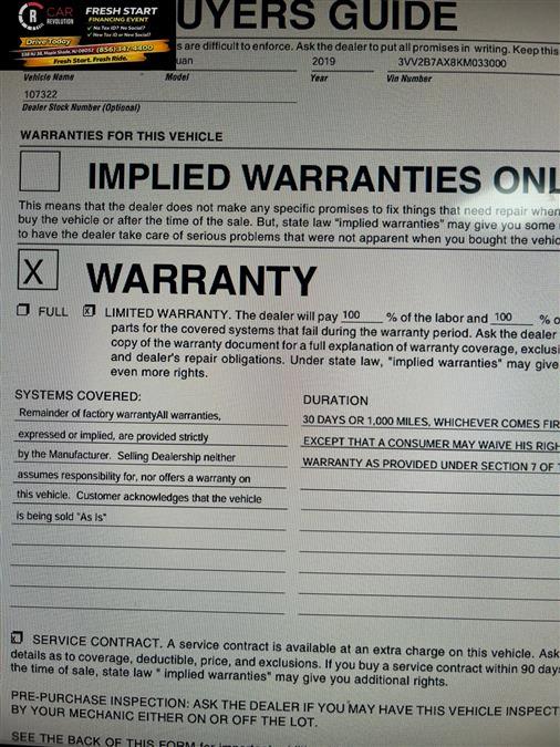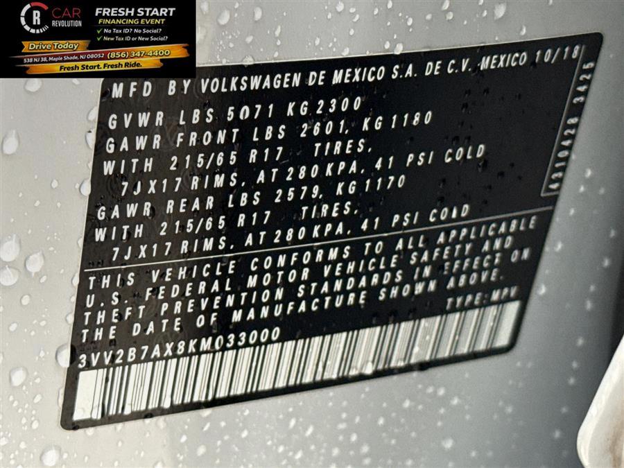 Car Revolution is honored to present a wonderful example of pure vehicle design... this 2019 Volkswagen Tiguan SE only has 88,189mi on it and could potentially be the vehicle of your dreams! Treat yourself to an SUV that surrounds you with all the comfort and conveniences of a luxury sedan. This Volkswagen Tiguan SE comes equipped with all wheel drive, which means no limitations as to how or where you can drive. Different terrains and varying weather conditions will have little effect as to how this vehicle performs. This White Volkswagen is clean and shiny exterior makes it look like it came straight from the factory. Driven by many, but adored by more, the Volkswagen Tiguan SE is a perfect addition to any home. Car Revolution has been in business since 1998 with 2 locations and over 300 cars. A family owned business, focused and determined to extend hospitality to all our clients. We make every effort to present information that is accurate. However, it is based on data provided by the vehicle manufacturer and other sources. Therefore exact Configuration, Color, Certification and Accessories should be used as a guide only and are not guaranteed under any circumstances, for any inaccuracies, claims of losses of any nature. All advertised prices includes all cost to be paid by the consumer, except: Title, Taxes, Registration, License Fees, Insurance, Dealer Prep, Additional Options and include all applicable rebates. Subject to Credit Approval. Every effort is made in order to display accurate and current vehicle information, including Pricing. All vehicles are subjected to prior sale, removal and transport elsewhere, awaiting Title and Ownership Confirmation. Inventory is updated daily and subject to change. Not responsible for typographical errors or omissions. To better insure the specific vehicle's availability, call us right away at 856-316-3444 and feel free to ask any questions. EMG-WB