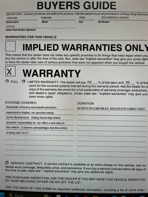 Pictures of used 2020 Chevrolet Colorado 2WD Work Truck in Maple Shade, NJ