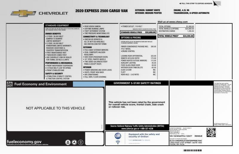 Standard Equipments on 2020 Chevrolet Express 2500 Rwd Cargo Work Van in Maple Shade, NJ