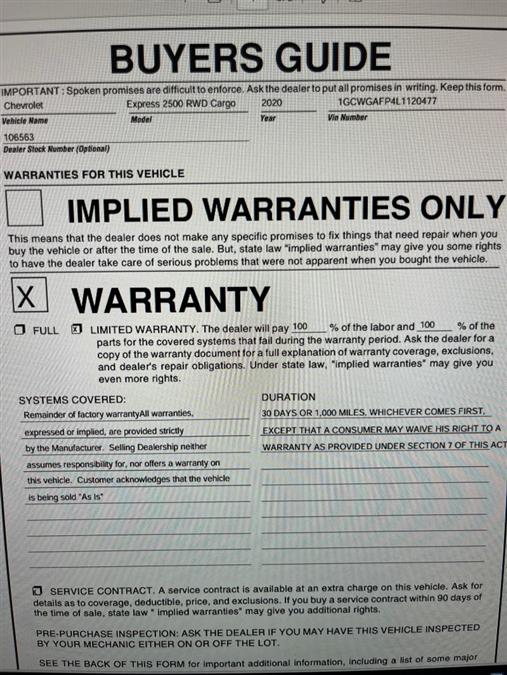 Pictures of used 2020 Chevrolet Express 2500 Rwd Cargo Work Van in Maple Shade, NJ