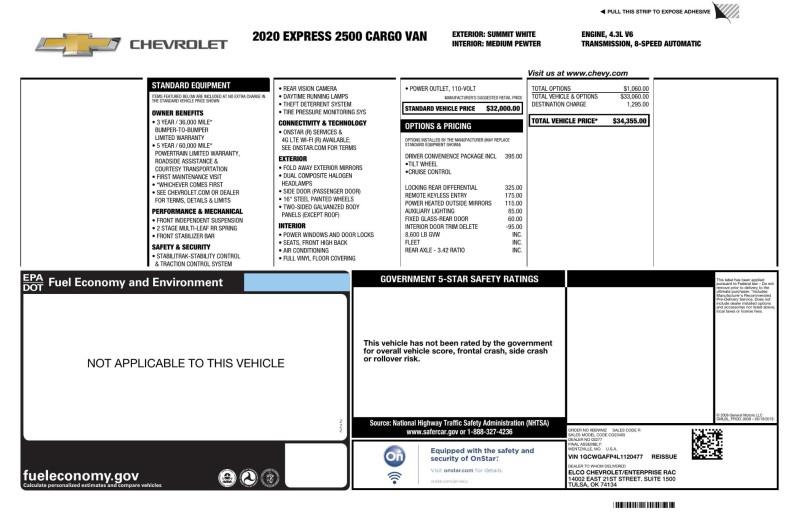 Standard Equipments on 2020 Chevrolet Express 2500 Rwd Cargo Work Van in Maple Shade, NJ