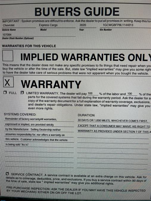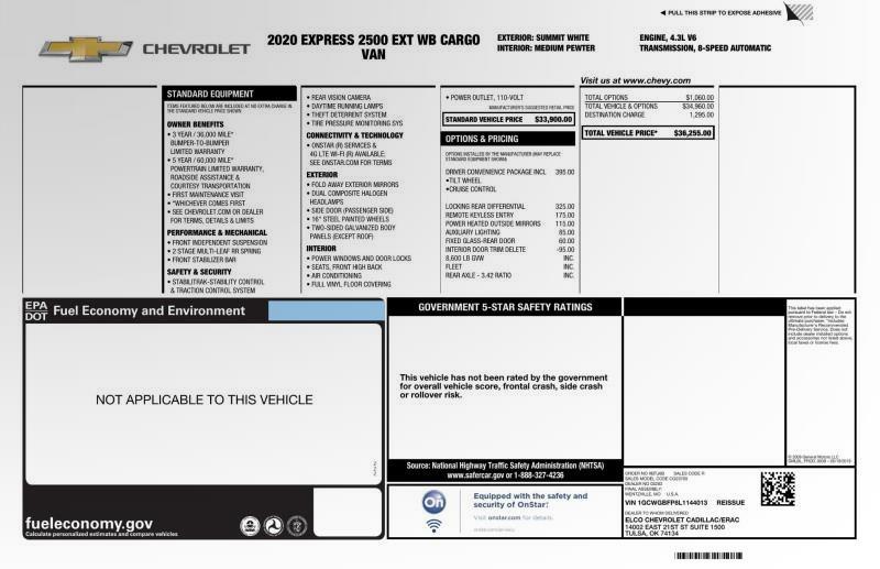 Standard Equipments on 2020 Chevrolet Express Cargo in Maple Shade, NJ