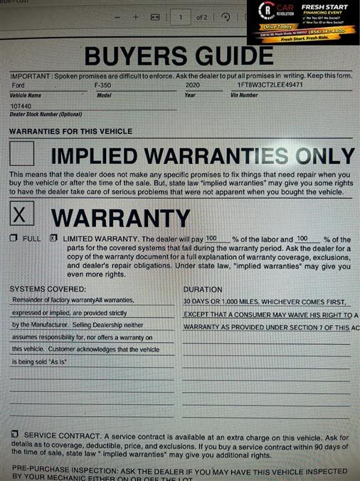 Pictures of used 2020 Ford F-350 XL 2WD CREW CAB 8 BOX in Maple Shade, NJ
