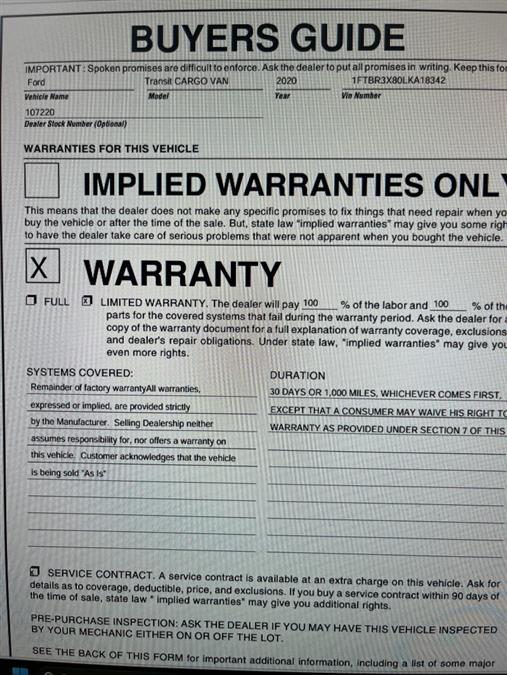 Looking for a clean, well-cared for 2020 Ford Transit-250 Cargo Van? This is it. This Ford includes: Optional Equipment: Safety and Security Daytime running lights Ford Co-Pilot360 - Blind Spot Information System (BLIS) Cross-Traffic Alert collision warning Security system Turn signal indicator in door mirrors Safety PERIMETER ANTI-THEFT ALARM Security system Convenience Heated driver and passenger side door mirrors Power folding door mirrors Comfort Manual driver seat lumbar Cloth front seat upholstery Cloth front seatback upholstery Front passenger seat armrest Driver seat manual reclining, lumbar support and fore/aft control Mechanical PUSHDOWN MANUAL PKG BRAKE Seating 2WAY DRV/PASS PALAZZO CLOTH Bucket front seats Manual driver seat lumbar Driver seat armrest Front passenger seat armrest Driver seat manual reclining, lumbar support and fore/aft control Passenger seat manual reclining and fore/aft control Cloth Front Bucket Seats Bucket front seats Cloth front seat upholstery Cloth front seatback upholstery Exterior FRONT LICENSE PLATE BRACKET Front license plate bracket DAYTIME RUNNING LAMPS Daytime running lights Short-Arm Power-Folding Heated Power Adjusting Mirrors Power door mirrors Heated driver and passenger side door mirrors Power folding door mirrors Turn signal indicator in door mirrors Additional Options Order Code 101A SHIP-THRU UTILIMASTER Interior BLIS W/ CROSS-TRAFFIC ALERT Power door mirrors Heated driver and passenger side door mirrors Power folding door mirrors Ford Co-Pilot360 - Blind Spot Information System (BLIS) Cross-Traffic Alert collision warning Turn signal indicator in door mirrors ORANGE SAFETY BELTS DARK PALAZZO GRAY CLOTH Engine SPEED LIMIT DEVICE (70 MPH) *Note - For third party subscriptions or services, please contact the dealer for more information.* This Ford Transit-250 Cargo Van 's level of quality is not meant for just anyone. It's meant for the person who strives for a classy, comfortable, and luxurious car. Gently driven doesn't even begin to explain how lovingly cared for this ultra-low mileage vehicle has been. This is the one. Just what you've been looking for. Car Revolution has been in business since 1998 with 2 locations and over 300 cars. A family owned business, focused and determined to extend hospitality to all our clients. We make every effort to present information that is accurate. However, it is based on data provided by the vehicle manufacturer and other sources. Therefore exact Configuration, Color, Certification and Accessories should be used as a guide only and are not guaranteed under any circumstances, for any inaccuracies, claims of losses of any nature. All advertised prices includes all cost to be paid by the consumer, except: Title, Taxes, Registration, License Fees, Insurance, Dealer Prep, Additional Options and include all applicable rebates. Subject to Credit Approval. Every effort is made in order to display accurate and current vehicle information, including Pricing. All vehicles are subjected to prior sale, removal and transport elsewhere, awaiting Title and Ownership Confirmation. Inventory is updated daily and subject to change. Not responsible for typographical errors or omissions. To better insure the specific vehicle's availability, call us right away at 856-316-3444 and feel free to ask any questions. EMG-WB Check out this pre-owned 2020 Ford Transit Cargo Van we recently got in. Excellence, luxury and stature are just a few of the pillars this car is built upon. The incredibly low mileage and painstaking upkeep on this Ford Transit Cargo Van makes it a once-in-a-lifetime deal that won't last long! Call us today to reserve your test drive! This is the one. Just what you've been looking for. You can finally stop searching... You've found the one you've been looking for. Car Revolution has been in business since 1998 with 2 locations and over 300 cars. A family owned business, focused and determined to extend hospitality to all our clients. We make every effort to present information that is accurate. However, it is based on data provided by the vehicle manufacturer and other sources. Therefore exact Configuration, Color, Certification and Accessories should be used as a guide only and are not guaranteed under any circumstances, for any inaccuracies, claims of losses of any nature. All advertised prices includes all cost to be paid by the consumer, except: Title, Taxes, Registration, License Fees, Insurance, Dealer Prep, Additional Options and include all applicable rebates. Subject to Credit Approval. Every effort is made in order to display accurate and current vehicle information, including Pricing. All vehicles are subjected to prior sale, removal and transport elsewhere, awaiting Title and Ownership Confirmation. Inventory is updated daily and subject to change. Not responsible for typographical errors or omissions. To better insure the specific vehicle's availability, call us right away at 856-316-3444 and feel free to ask any questions. EMG-WB