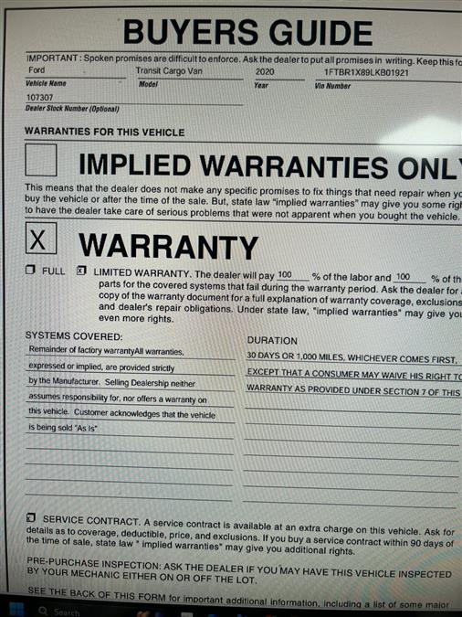 Pictures of used 2020 Ford Transit Cargo Van T-250 HIGH ROOF in Maple Shade, NJ