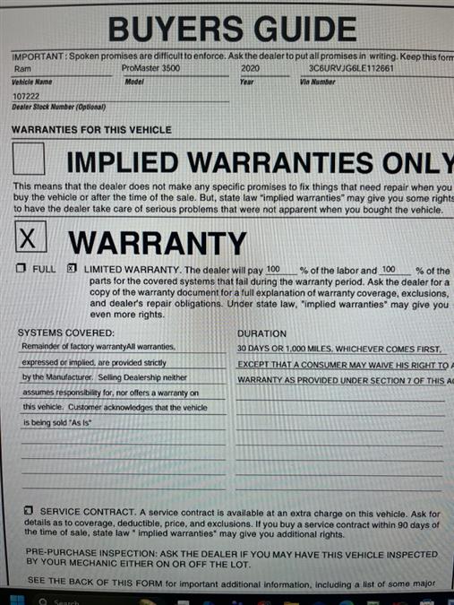 Pictures of used 2020 Ram Promaster 3500 High Roof EXT in Maple Shade, NJ