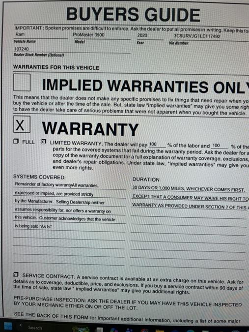 Pictures of used 2020 Ram Promaster 3500 in Maple Shade, NJ