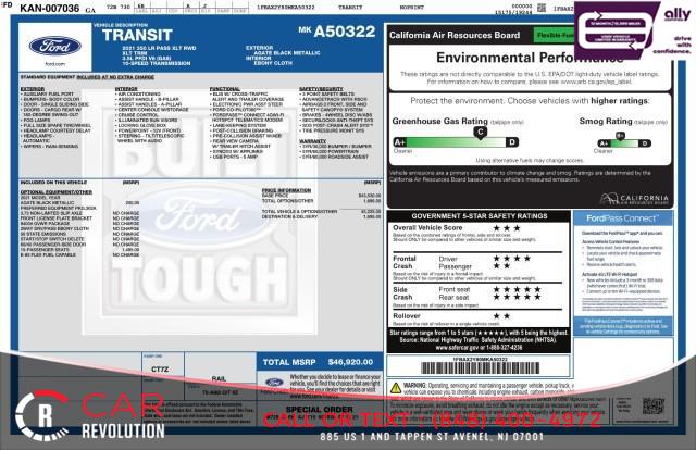 Thank you for visiting another one of CAR REVOLUTION's online listings! Please continue for more information on this 2021 Ford Transit Passenger Wagon XL with 86,821mi. You deserve a vehicle designed for higher expectations. This Ford Transit Passenger Wagon XL delivers with a luxurious, well-appointed interior and world-class engineering. You can finally stop searching... You've found the one you've been looking for. Just what you've been looking for. With quality in mind, this vehicle is the perfect addition to take home. Based on the superb condition of this vehicle, along with the options and color, this Ford Transit Passenger Wagon XL is sure to sell fast. Car Revolution has been in business since 1998 with 2 locations and over 300 cars. A family owned business, focused and determined to extend hospitality to all our clients. We make every effort to present information that is accurate. However, it is based on data provided by the vehicle manufacturer and other sources. Therefore exact Configuration, Color, Certification and Accessories should be used as a guide only and are not guaranteed under any circumstances, for any inaccuracies, claims of losses of any nature. All advertised prices includes all cost to be paid by the consumer, except: Title, Taxes, Registration, License Fees, Insurance, Dealer Prep, Additional Options and include all applicable rebates. Subject to Credit Approval. Every effort is made in order to display accurate and current vehicle information, including Pricing. All vehicles are subjected to prior sale, removal and transport elsewhere, awaiting Title and Ownership Confirmation. Inventory is updated daily and subject to change. Not responsible for typographical errors or omissions. To better insure the specific vehicle's availability, call us right away at 732-527-0477 and feel free to ask any questions. EMG-WB