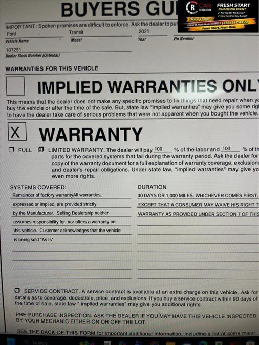 Pictures of used 2021 Ford Transit T-250 HIGH ROOF in Maple Shade, NJ
