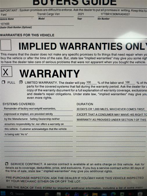 Pictures of used 2021 Ford Transit Cargo Van T250 MED ROOF in Maple Shade, NJ