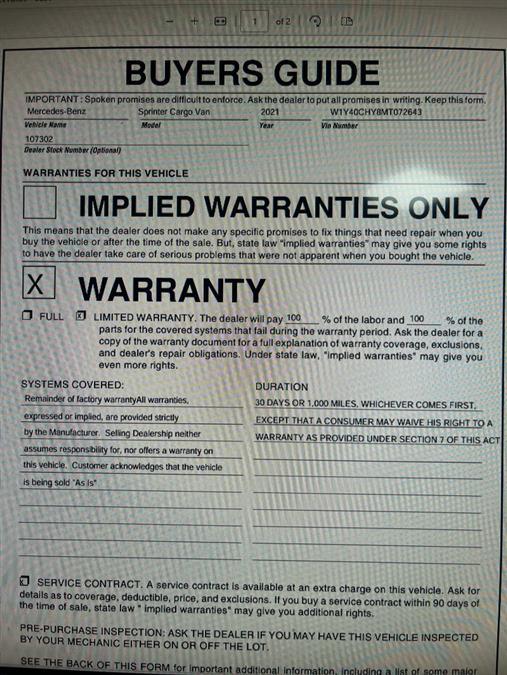 This 2021 Mercedes-benz Sprinter Cargo Van is available at: