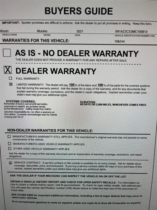Used 2021 Nissan Murano SL|78,169 Miles|All Wheel Drive