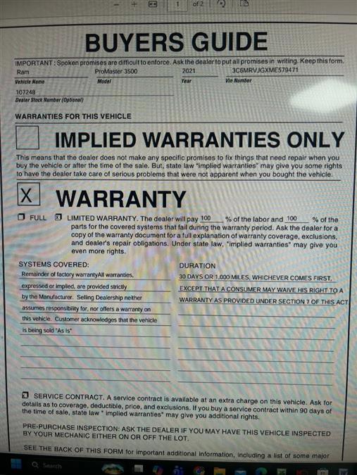 Pictures of used 2021 Ram Promaster 3500 in Maple Shade, NJ