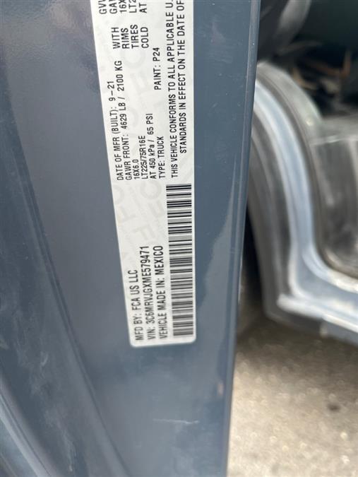 Car Revolution is excited to offer this 2021 Ram ProMaster 3500 High Roof EXT. This Ram includes: Optional Equipment: Safety and Security Daytime running lights Blind Spot Detection Forward Collision Warning-Plus Cross Path Detection collision warning Security system Safety Security Alarm Security system Orange Seat Belts Convenience Power door mirrors Heated driver and passenger side door mirrors Power folding door mirrors Exterior and Appearance Front license plate bracket Powertrain and Mechanical Auto stop-start engine 70.00 mph speed limiter Exterior Daytime Running Headlamps Daytime running lights Front License Plate Bracket Front license plate bracket Power Folding/heated Mirrors Power door mirrors Heated driver and passenger side door mirrors Driver and passenger convex spotter mirrors Trailer style side mirrors Power folding door mirrors Turn signal indicator in door mirrors Black door mirrors Upfit Interface Connector Additional Options Quick Order Package 21A Interior Blind Spot and Cross Path Detection Blind Spot Detection Cross Path Detection collision warning Full Speed FWD Collision Warn Plus Forward Collision Warning-Plus Manufacturer's Statement of Origin Delete Inside Rear View Mirror Door-Only Key Door Auto Lock-Unlock Auto-locking doors Key-In-ignition Alert Key in vehicle warning Driver Feedback System Radio Mute on Reverse Black Engine 100 Amp Battery 220 Amp Alternator Alternator 70 Mph Maximum Speed 70.00 mph speed limiter Engine Auto Shut-Off Auto stop-start engine *Note - For third party subscriptions or services, please contact the dealer for more information.* Indulge yourself with one of the most highly crafted, most luxurious automobiles available today. The Ram ProMaster 3500 High Roof EXT will provide you with everything you have always wanted in a car -- Quality, Reliability, and Character. There are many vehicles on the market but if you are looking for a vehicle that will perform as good as it looks then this Ram ProMaster 3500 High Roof EXT is the one! Car Revolution has been in business since 1998 with 2 locations and over 300 cars. A family owned business, focused and determined to extend hospitality to all our clients. We make every effort to present information that is accurate. However, it is based on data provided by the vehicle manufacturer and other sources. Therefore exact Configuration, Color, Certification and Accessories should be used as a guide only and are not guaranteed under any circumstances, for any inaccuracies, claims of losses of any nature. All advertised prices includes all cost to be paid by the consumer, except: Title, Taxes, Registration, License Fees, Insurance, Dealer Prep, Additional Options and include all applicable rebates. Subject to Credit Approval. Every effort is made in order to display accurate and current vehicle information, including Pricing. All vehicles are subjected to prior sale, removal and transport elsewhere, awaiting Title and Ownership Confirmation. Inventory is updated daily and subject to change. Not responsible for typographical errors or omissions. To better insure the specific vehicle's availability, call us right away at 856-316-3444 and feel free to ask any questions. EMG-WB Car Revolution is pleased to be currently offering this 2021 Ram ProMaster Cargo Van with 79,514mi. Indulge yourself with one of the most highly crafted, most luxurious automobiles available today. This is the one. Just what you've been looking for. Look no further, you have found exactly what you've been looking for. There are many vehicles on the market but if you are looking for a vehicle that will perform as good as it looks then this Ram ProMaster Cargo Van is the one! Car Revolution has been in business since 1998 with 2 locations and over 300 cars. A family owned business, focused and determined to extend hospitality to all our clients. We make every effort to present information that is accurate. However, it is based on data provided by the vehicle manufacturer and other sources. Therefore exact Configuration, Color, Certification and Accessories should be used as a guide only and are not guaranteed under any circumstances, for any inaccuracies, claims of losses of any nature. All advertised prices includes all cost to be paid by the consumer, except: Title, Taxes, Registration, License Fees, Insurance, Dealer Prep, Additional Options and include all applicable rebates. Subject to Credit Approval. Every effort is made in order to display accurate and current vehicle information, including Pricing. All vehicles are subjected to prior sale, removal and transport elsewhere, awaiting Title and Ownership Confirmation. Inventory is updated daily and subject to change. Not responsible for typographical errors or omissions. To better insure the specific vehicle's availability, call us right away at 856-316-3444 and feel free to ask any questions. EMG-WB