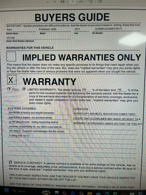 Pictures of used 2021 Ram Promaster 3500 in Maple Shade, NJ