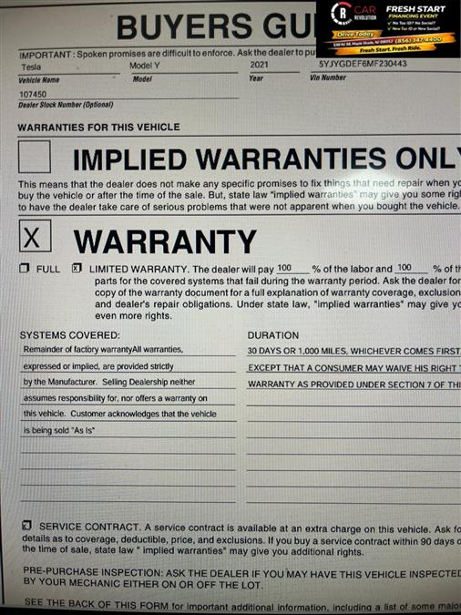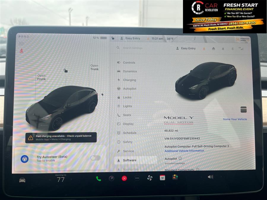 Car Revolution is honored to present a wonderful example of pure vehicle design... this 2021 Tesla Model Y Performance only has 48,815mi on it and could potentially be the vehicle of your dreams! This Tesla Model Y offers all the comforts of a well-optioned sedan with the utility you demand from an SUV. Excellence, luxury and stature are just a few of the pillars this car is built upon. When driving an all wheel drive vehicle, such as this Tesla Model Y Performance, superior acceleration, traction, and control come standard. In addition to being well-cared for, this Tesla Model Y has very low mileage making it a rare find. Car Revolution has been in business since 1998 with 2 locations and over 300 cars. A family owned business, focused and determined to extend hospitality to all our clients. We make every effort to present information that is accurate. However, it is based on data provided by the vehicle manufacturer and other sources. Therefore exact Configuration, Color, Certification and Accessories should be used as a guide only and are not guaranteed under any circumstances, for any inaccuracies, claims of losses of any nature. All advertised prices includes all cost to be paid by the consumer, except: Title, Taxes, Registration, License Fees, Insurance, Dealer Prep, Additional Options and include all applicable rebates. Subject to Credit Approval. Every effort is made in order to display accurate and current vehicle information, including Pricing. All vehicles are subjected to prior sale, removal and transport elsewhere, awaiting Title and Ownership Confirmation. Inventory is updated daily and subject to change. Not responsible for typographical errors or omissions. To better insure the specific vehicle's availability, call us right away at 856-316-3444 and feel free to ask any questions. EMG-WB