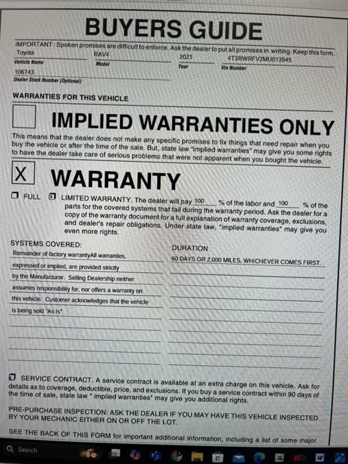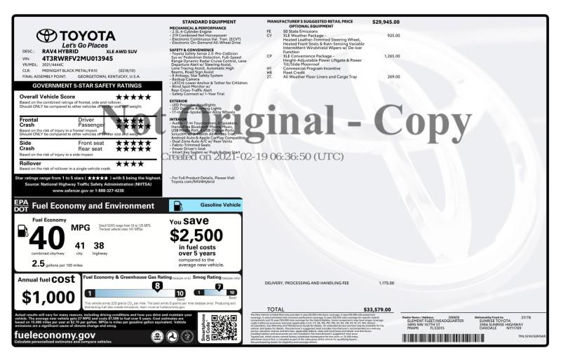 Thank you for visiting another one of Car Revolution's online listings! Please continue for more information on this 2021 Toyota RAV4 Hybrid XLE with 81,235mi. The Toyota RAV4 Hybrid XLE offers a fair amount of utility thanks to its advanced features and unique styling. It's also quite sporty, and injects an ample amount of handling chutzpah into the ridin'-high body of a family-friendly SUV. If you are looking for a vehicle with great styling, options and incredible fuel economy, look no further than this quality automobile. When driving an all wheel drive vehicle, such as this Toyota RAV4 Hybrid XLE, superior acceleration, traction, and control come standard. Look no further, you have found exactly what you've been looking for. Car Revolution has been in business since 1998 with 2 locations and over 300 cars. A family owned business, focused and determined to extend hospitality to all our clients. We make every effort to present information that is accurate. However, it is based on data provided by the vehicle manufacturer and other sources. Therefore exact Configuration, Color, Certification and Accessories should be used as a guide only and are not guaranteed under any circumstances, for any inaccuracies, claims of losses of any nature. All advertised prices includes all cost to be paid by the consumer, except: Title, Taxes, Registration, License Fees, Insurance, Dealer Prep, Additional Options and include all applicable rebates. Subject to Credit Approval. Every effort is made in order to display accurate and current vehicle information, including Pricing. All vehicles are subjected to prior sale, removal and transport elsewhere, awaiting Title and Ownership Confirmation. Inventory is updated daily and subject to change. Not responsible for typographical errors or omissions. To better insure the specific vehicle's availability, call us right away at 856-316-3444 and feel free to ask any questions. EMG-WB Thank you for your interest in one of Car Revolution's online offerings. Please continue for more information regarding this 2021 Toyota RAV4 Hybrid XLE with 81,235mi. On almost any road condition, this Toyota RAV4 Hybrid XLE offers solid performance, reliability, and comfort. The 2021 Toyota offers compelling fuel-efficiency along with great value. You will no longer feel the need to repeatedly fill up this Toyota RAV4 Hybrid XLE's gas tank, in part because of it's superb EPA rating. This vehicle has an added performance bonus: AWD. It improves handling on those winding back roads, and gives you added safety and control when driving through wet and snow weather conditions. You could keep looking, but why? You've found the perfect vehicle right here. Car Revolution has been in business since 1998 with 2 locations and over 300 cars. A family owned business, focused and determined to extend hospitality to all our clients. We make every effort to present information that is accurate. However, it is based on data provided by the vehicle manufacturer and other sources. Therefore exact Configuration, Color, Certification and Accessories should be used as a guide only and are not guaranteed under any circumstances, for any inaccuracies, claims of losses of any nature. All advertised prices includes all cost to be paid by the consumer, except: Title, Taxes, Registration, License Fees, Insurance, Dealer Prep, Additional Options and include all applicable rebates. Subject to Credit Approval. Every effort is made in order to display accurate and current vehicle information, including Pricing. All vehicles are subjected to prior sale, removal and transport elsewhere, awaiting Title and Ownership Confirmation. Inventory is updated daily and subject to change. Not responsible for typographical errors or omissions. To better insure the specific vehicle's availability, call us right away at 856-316-3444 and feel free to ask any questions. EMG-WB