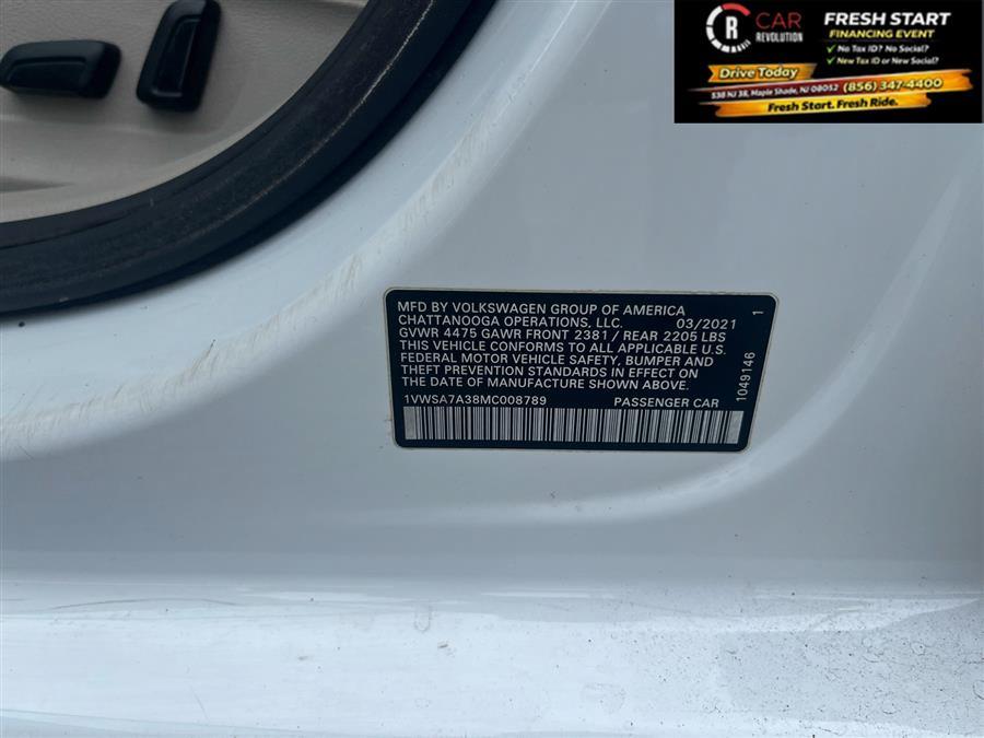 Car Revolution has a wide selection of exceptional pre-owned vehicles to choose from, including this 2021 Volkswagen Passat. The greater your fuel-efficiency, the less your carbon footprint. And with exceptional MPGs, this Volkswagen Passat treads ever so lightly on Mother Earth. It's not a misprint. And the odometer isn't broken. This is a very low mileage Volkswagen Passat. A rare find these days. This White Volkswagen is clean and shiny exterior makes it look like it came straight from the factory. You could keep looking, but why? You've found the perfect vehicle right here. Car Revolution has been in business since 1998 with 2 locations and over 300 cars. A family owned business, focused and determined to extend hospitality to all our clients. We make every effort to present information that is accurate. However, it is based on data provided by the vehicle manufacturer and other sources. Therefore exact Configuration, Color, Certification and Accessories should be used as a guide only and are not guaranteed under any circumstances, for any inaccuracies, claims of losses of any nature. All advertised prices includes all cost to be paid by the consumer, except: Title, Taxes, Registration, License Fees, Insurance, Dealer Prep, Additional Options and include all applicable rebates. Subject to Credit Approval. Every effort is made in order to display accurate and current vehicle information, including Pricing. All vehicles are subjected to prior sale, removal and transport elsewhere, awaiting Title and Ownership Confirmation. Inventory is updated daily and subject to change. Not responsible for typographical errors or omissions. To better insure the specific vehicle's availability, call us right away at 856-316-3444 and feel free to ask any questions. EMG-WB