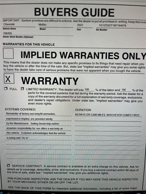 This 2022 Chevrolet Malibu is available at: