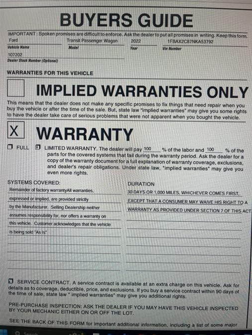 Pictures of used 2022 Ford Transit Passenger Wagon T-350 XLT 15 in Maple Shade, NJ