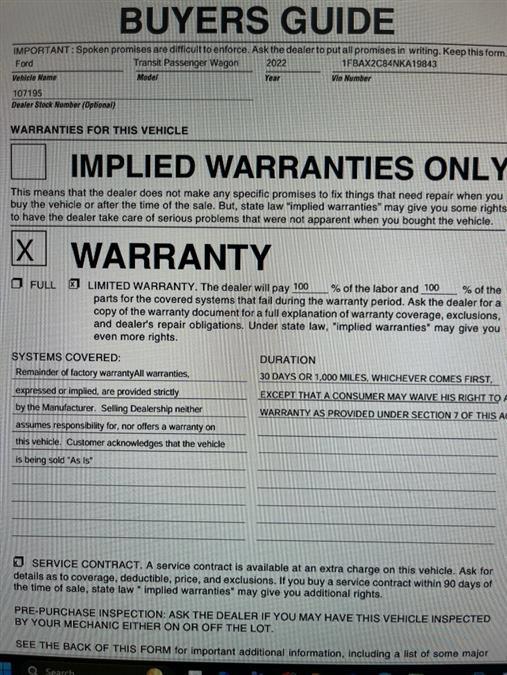 Pictures of used 2022 Ford Transit Passenger Wagon XL in Maple Shade, NJ