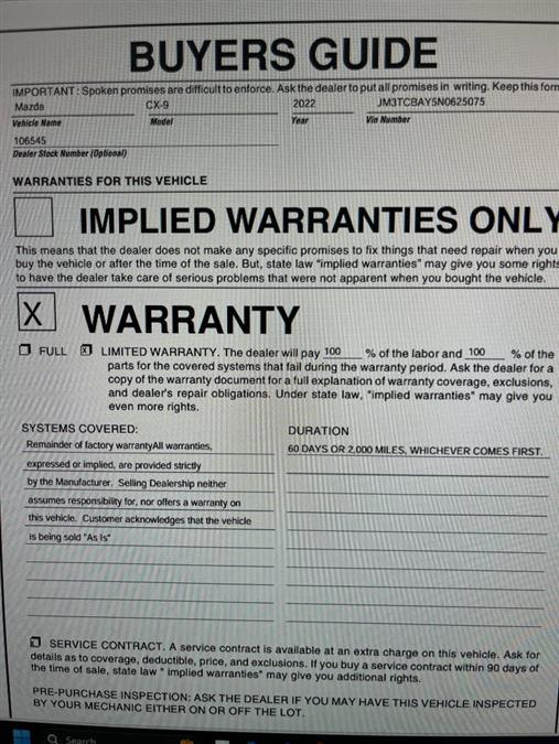 Pictures of used 2022 Mazda Cx-9 Touring Plus AWD in Maple Shade, NJ