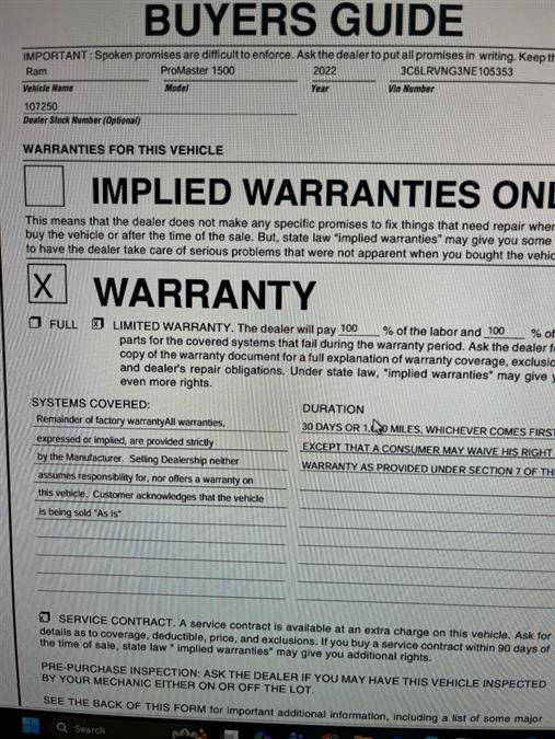 Pictures of used 2022 Ram Promaster 1500 Low Roof in Maple Shade, NJ