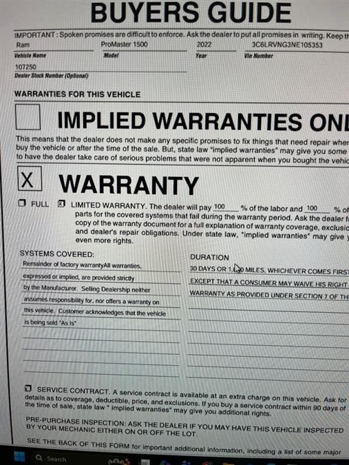 Pictures of used 2022 Ram Promaster 1500 Low Roof in Maple Shade, NJ