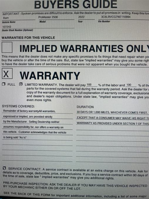 Pictures of used 2022 Ram Promaster 2500 High Roof 136 in Maple Shade, NJ