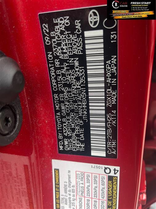 Car Revolution is honored to present a wonderful example of pure vehicle design... this 2022 Toyota C-HR Nightshade FWD only has 66,877mi on it and could potentially be the vehicle of your dreams! This Toyota includes: Optional Equipment: Interior All Weather Floor Liners/Cargo Liner Rubber front and rear floor mats Vinyl/rubber cargo mat Black Convenience Vinyl/rubber cargo mat Comfort Rubber front and rear floor mats Exterior and Appearance Metallic paint Roof accent two-tone paint scheme Paint Supersonic Red Metallic paint Emissions 50 State Emissions LEV3-ULEV125 emissions Tier 3 Bin 125 emissions Additional Options Nightshade Edition *Note - For third party subscriptions or services, please contact the dealer for more information.* Do so much more with one vehicle. This Toyota C-HR gives you everything you need an automobile to be. Stylish and fuel efficient. It's the perfect vehicle for keeping your fuel costs down and your driving enjoying up. There are many vehicles on the market but if you are looking for a vehicle that will perform as good as it looks then this Toyota C-HR Nightshade FWD is the one! Car Revolution has been in business since 1998 with 2 locations and over 300 cars. A family owned business, focused and determined to extend hospitality to all our clients. We make every effort to present information that is accurate. However, it is based on data provided by the vehicle manufacturer and other sources. Therefore exact Configuration, Color, Certification and Accessories should be used as a guide only and are not guaranteed under any circumstances, for any inaccuracies, claims of losses of any nature. All advertised prices includes all cost to be paid by the consumer, except: Title, Taxes, Registration, License Fees, Insurance, Dealer Prep, Additional Options and include all applicable rebates. Subject to Credit Approval. Every effort is made in order to display accurate and current vehicle information, including Pricing. All vehicles are subjected to prior sale, removal and transport elsewhere, awaiting Title and Ownership Confirmation. Inventory is updated daily and subject to change. Not responsible for typographical errors or omissions. To better insure the specific vehicle's availability, call us right away at 856-316-3444 and feel free to ask any questions. EMG-WB Contact Car Revolution today for information on dozens of vehicles like this 2022 Toyota C-HR Nightshade. Perfect for the on-the-go family, this Toyota C-HR Nightshade is an SUV everyone will love. With exceptional mileage, options and power, you'll insist on driving it on all your outings. The greater your fuel-efficiency, the less your carbon footprint. And with exceptional MPGs, this Toyota C-HR treads ever so lightly on Mother Earth. Just what you've been looking for. With quality in mind, this vehicle is the perfect addition to take home. The Toyota C-HR Nightshade will provide you with everything you have always wanted in a car -- Quality, Reliability, and Character. Car Revolution has been in business since 1998 with 2 locations and over 300 cars. A family owned business, focused and determined to extend hospitality to all our clients. We make every effort to present information that is accurate. However, it is based on data provided by the vehicle manufacturer and other sources. Therefore exact Configuration, Color, Certification and Accessories should be used as a guide only and are not guaranteed under any circumstances, for any inaccuracies, claims of losses of any nature. All advertised prices includes all cost to be paid by the consumer, except: Title, Taxes, Registration, License Fees, Insurance, Dealer Prep, Additional Options and include all applicable rebates. Subject to Credit Approval. Every effort is made in order to display accurate and current vehicle information, including Pricing. All vehicles are subjected to prior sale, removal and transport elsewhere, awaiting Title and Ownership Confirmation. Inventory is updated daily and subject to change. Not responsible for typographical errors or omissions. To better insure the specific vehicle's availability, call us right away at 856-316-3444 and feel free to ask any questions. EMG-WB