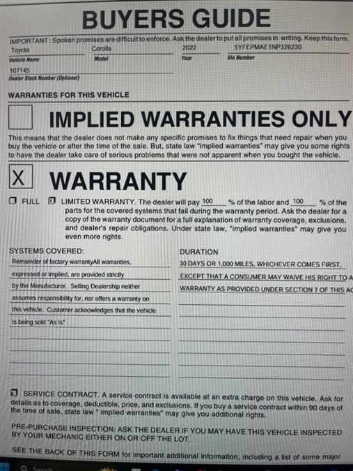 Pictures of used 2022 Toyota Corolla LE in Maple Shade, NJ