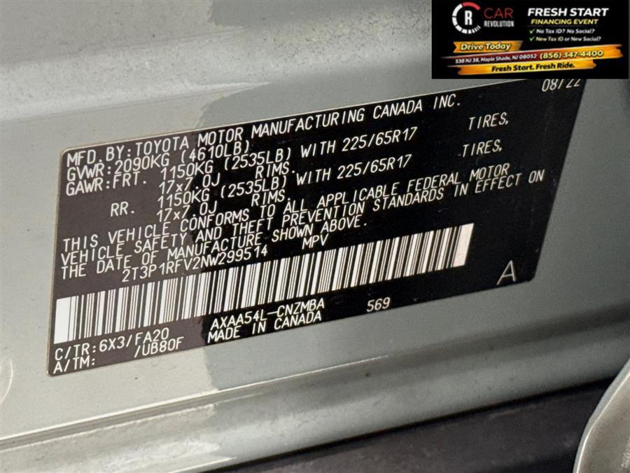 Car Revolution is honored to present a wonderful example of pure vehicle design... this 2022 Toyota RAV4 XLE only has 34,077mi on it and could potentially be the vehicle of your dreams! Want more room? Want more style? This Toyota RAV4 XLE is the vehicle for you. This wonderfully fuel-efficient vehicle offers a supple ride, quick acceleration and superior styling without sacrificing MPGs. You'll love the feel of AWD in this 2022 Toyota RAV4. It provides a perfect balance of handling power and control in virtually every driving condition. This low mileage Toyota RAV4 has barely been touched. It's the next best thing to buying new. Car Revolution has been in business since 1998 with 2 locations and over 300 cars. A family owned business, focused and determined to extend hospitality to all our clients. We make every effort to present information that is accurate. However, it is based on data provided by the vehicle manufacturer and other sources. Therefore exact Configuration, Color, Certification and Accessories should be used as a guide only and are not guaranteed under any circumstances, for any inaccuracies, claims of losses of any nature. All advertised prices includes all cost to be paid by the consumer, except: Title, Taxes, Registration, License Fees, Insurance, Dealer Prep, Additional Options and include all applicable rebates. Subject to Credit Approval. Every effort is made in order to display accurate and current vehicle information, including Pricing. All vehicles are subjected to prior sale, removal and transport elsewhere, awaiting Title and Ownership Confirmation. Inventory is updated daily and subject to change. Not responsible for typographical errors or omissions. To better insure the specific vehicle's availability, call us right away at 856-316-3444 and feel free to ask any questions. EMG-WB