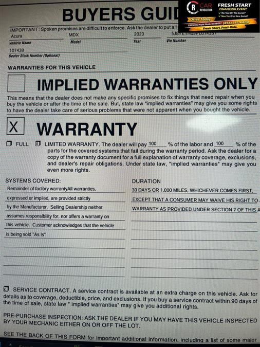 This 2023 Acura MDX w/A-Spec Package is proudly offered by Car Revolution This Acura MDX w/A-Spec Package has a tough exterior complemented by a well-designed interior that offers all the comforts you crave. You appreciate the finer things in life, the vehicle you drive should not be the exception. Style, performance, sophistication is in a class of its own with this stunning Acura MDX w/A-Spec Package. This AWD-equipped vehicle will handle beautifully on any terrain and in any weather condition your may find yourself in. The benefits of driving an all wheel drive vehicle, such as this Acura MDX w/A-Spec Package, include superior acceleration, improved steering, and increased traction and stability. A truly breathtaking example of pure vehicle design achievement...this is the vehicle of your dreams! Car Revolution has been in business since 1998 with 2 locations and over 300 cars. A family owned business, focused and determined to extend hospitality to all our clients. We make every effort to present information that is accurate. However, it is based on data provided by the vehicle manufacturer and other sources. Therefore exact Configuration, Color, Certification and Accessories should be used as a guide only and are not guaranteed under any circumstances, for any inaccuracies, claims of losses of any nature. All advertised prices includes all cost to be paid by the consumer, except: Title, Taxes, Registration, License Fees, Insurance, Dealer Prep, Additional Options and include all applicable rebates. Subject to Credit Approval. Every effort is made in order to display accurate and current vehicle information, including Pricing. All vehicles are subjected to prior sale, removal and transport elsewhere, awaiting Title and Ownership Confirmation. Inventory is updated daily and subject to change. Not responsible for typographical errors or omissions. To better insure the specific vehicle's availability, call us right away at 856-316-3444 and feel free to ask any questions. EMG-WB