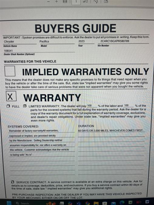 You can find this 2023 Chrysler Pacifica Touring L FWD and many others like it at Car Revolution. This Chrysler includes: Optional Equipment: Exterior and Appearance Pearlcoat paint Additional Options Quick Order Package 27L Interior Black Seats Black/Alloy/Black Fuel Economy and Emissions Federal emissions Paint Brilliant Black Crystal P Pearlcoat paint *Note - For third party subscriptions or services, please contact the dealer for more information.* Quality and prestige abound with this Chrysler Pacifica Touring L FWD. This vehicle won't last long, take it home today. You could keep looking, but why? You've found the perfect vehicle right here. Car Revolution has been in business since 1998 with 2 locations and over 300 cars. A family owned business, focused and determined to extend hospitality to all our clients. We make every effort to present information that is accurate. However, it is based on data provided by the vehicle manufacturer and other sources. Therefore exact Configuration, Color, Certification and Accessories should be used as a guide only and are not guaranteed under any circumstances, for any inaccuracies, claims of losses of any nature. All advertised prices includes all cost to be paid by the consumer, except: Title, Taxes, Registration, License Fees, Insurance, Dealer Prep, Additional Options and include all applicable rebates. Subject to Credit Approval. Every effort is made in order to display accurate and current vehicle information, including Pricing. All vehicles are subjected to prior sale, removal and transport elsewhere, awaiting Title and Ownership Confirmation. Inventory is updated daily and subject to change. Not responsible for typographical errors or omissions. To better insure the specific vehicle's availability, call us right away at 856-316-3444 and feel free to ask any questions. EMG-WB Car Revolution is honored to present a wonderful example of pure vehicle design... this 2023 Chrysler Pacifica Touring L only has 61,379mi on it and could potentially be the vehicle of your dreams! There's a level of quality and refinement in this Chrysler Pacifica Touring L that you won't find in your average vehicle. There are many vehicles on the market but if you are looking for a vehicle that will perform as good as it looks then this Chrysler Pacifica Touring L is the one! Driven by many, but adored by more, the Chrysler Pacifica Touring L is a perfect addition to any home. This is about the time when you're saying it is too good to be true, and let us be the one's to tell you, it is absolutely true. Car Revolution has been in business since 1998 with 2 locations and over 300 cars. A family owned business, focused and determined to extend hospitality to all our clients. We make every effort to present information that is accurate. However, it is based on data provided by the vehicle manufacturer and other sources. Therefore exact Configuration, Color, Certification and Accessories should be used as a guide only and are not guaranteed under any circumstances, for any inaccuracies, claims of losses of any nature. All advertised prices includes all cost to be paid by the consumer, except: Title, Taxes, Registration, License Fees, Insurance, Dealer Prep, Additional Options and include all applicable rebates. Subject to Credit Approval. Every effort is made in order to display accurate and current vehicle information, including Pricing. All vehicles are subjected to prior sale, removal and transport elsewhere, awaiting Title and Ownership Confirmation. Inventory is updated daily and subject to change. Not responsible for typographical errors or omissions. To better insure the specific vehicle's availability, call us right away at 856-316-3444 and feel free to ask any questions. EMG-WB